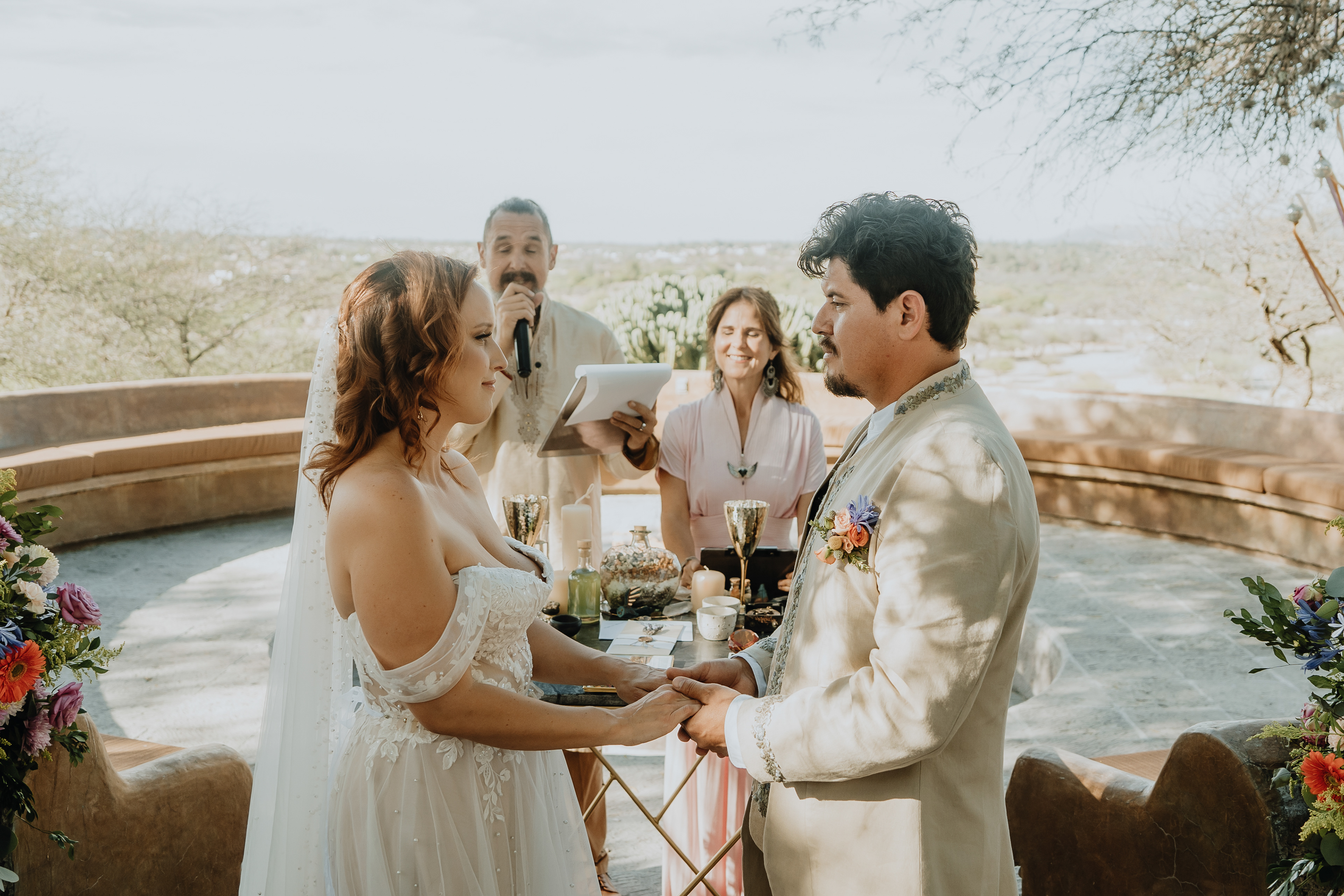 En el cálido abrazo del sol, bajo el dosel de flores vibrantes y el aroma embriagador de las hierbas sagradas, Ashley y Oskar se prometieron amor eterno.